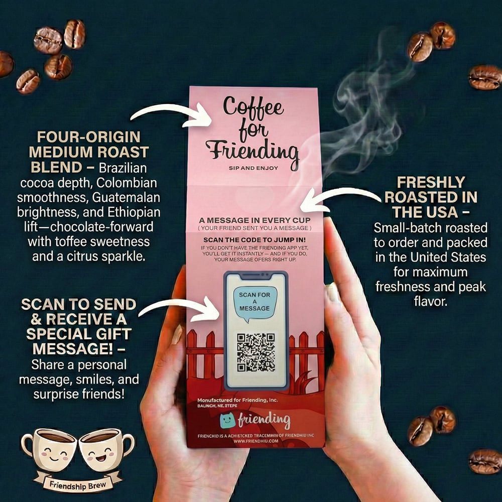 At Friending Coffee, we believe a great gift should feel personal. That’s why every coffee or gift you purchase from us comes with the option to add your own custom message. We print a unique QR code on the product, and when the recipient scans it, your message appears instantly. It’s a simple idea — but one that turns every gift into a warm, meaningful connection.