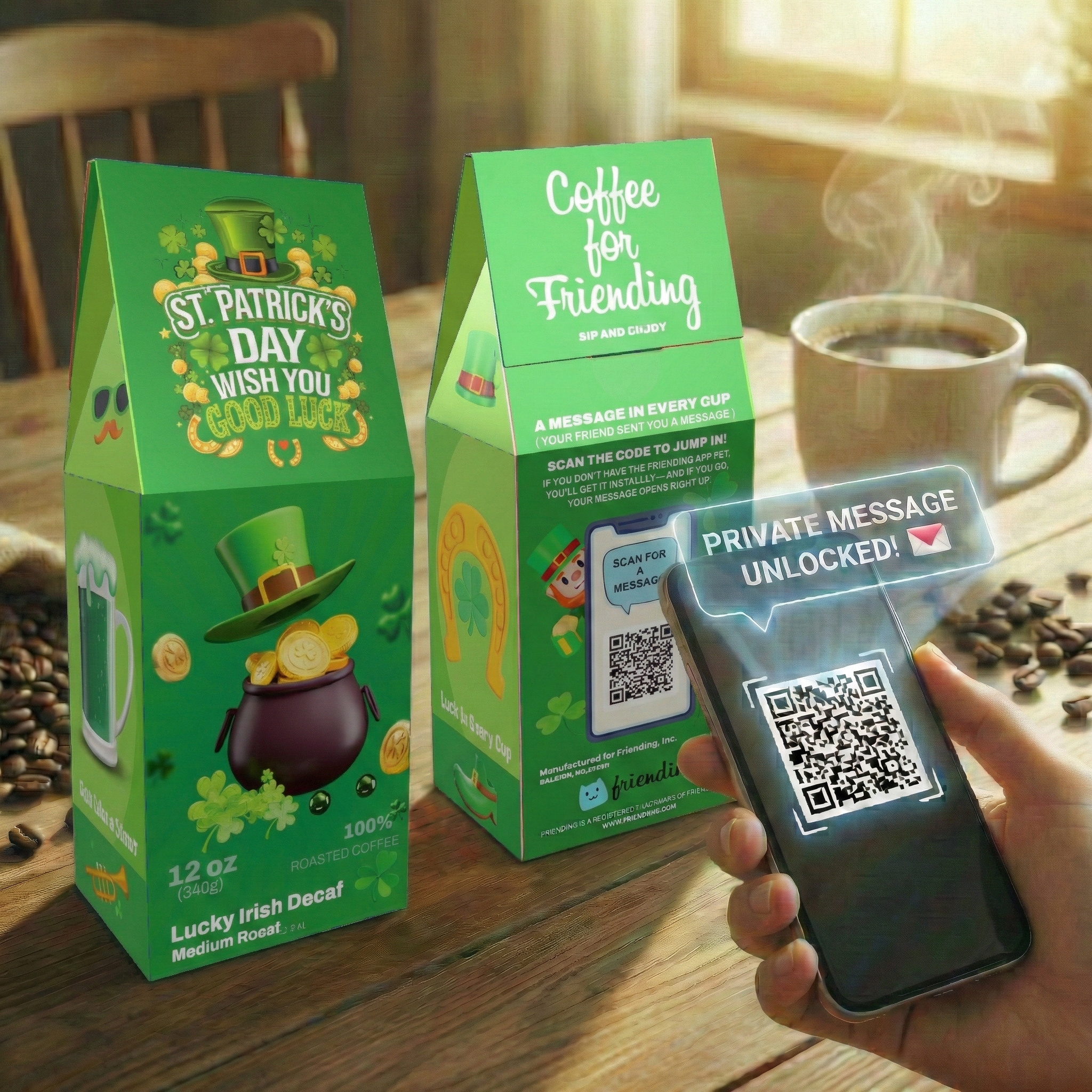 At Friending Coffee, we believe a great gift should feel personal. That’s why every coffee or gift you purchase from us comes with the option to add your own custom message. We print a unique QR code on the product, and when the recipient scans it, your message appears instantly. It’s a simple idea — but one that turns every gift into a warm, meaningful connection.